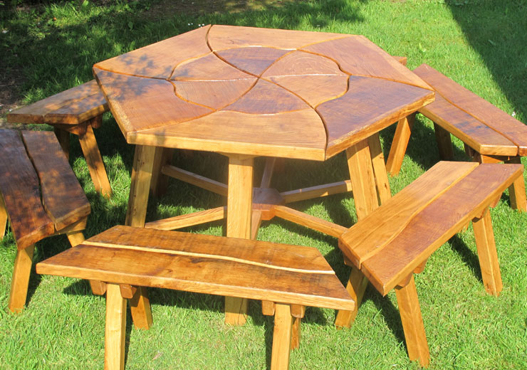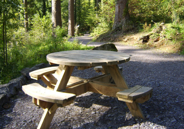 Byrddau picnic crwn sy’n eistedd wyth o bobl